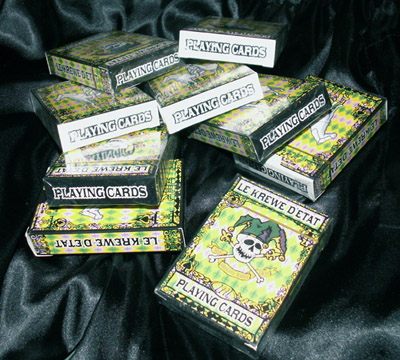 In 2009, D'Etat asked that I come up with a unique throw. Playing cards came to mind and they liked the idea. 10,000 decks were made in 2009 and 2010, half white-backed and half black-backed.