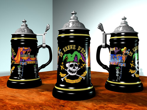 The 2009 Krewe D'Etat Beer Stein. Less than 300 made, sold to the Krewe only. Made in Germany. I designed this in 3D.