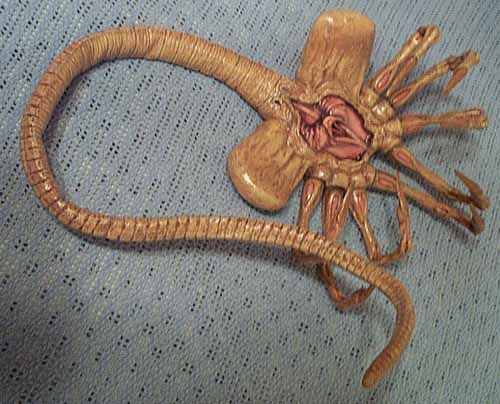 The Halcyon Facehugger - Vinyl model from 1993. The original. Fitted with an endoskeleton. Wire, PVC, glue, clamps, stuffing. Fully poseable. Not for sale.